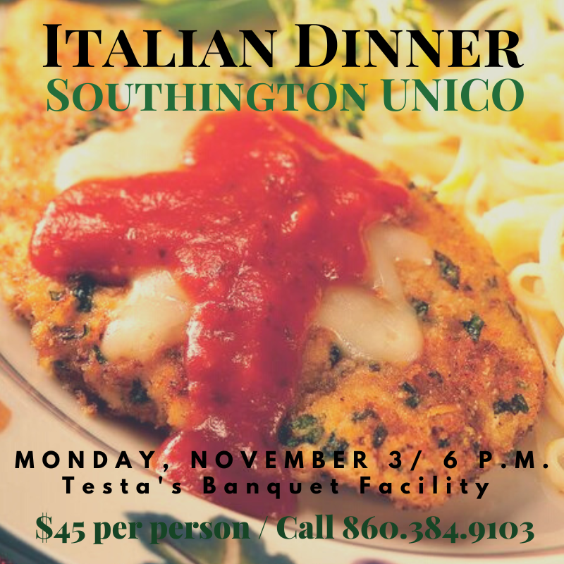 It’s that time again. UNICO’s fabulous Monday Night Dinner is quickly approaching (November 3rd). Our annual Italian Dinner features delicious cuisine and great company! Bring your family and friends for a great evening while supporting Southington UNICO’s charitable endeavors. $45 per person. Call Dave Zoni to reserve your seat or table at 860.384.9103.